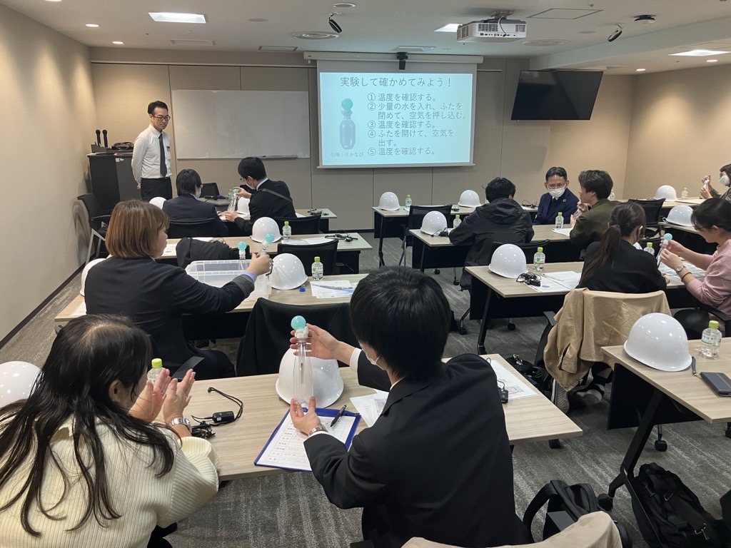教員代表の方による実験も取り入れた「冷暖房のしくみ」という模擬授業が行われ、参加された先生の間では、授業への活用方法についての積極的な議論が行われておりました。