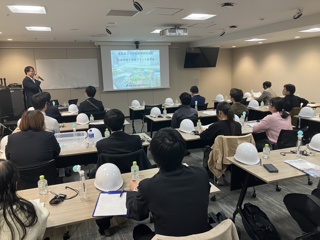 本見学会は、10月1日に行いました豊島区立の中学生徒が参加されたプラント見学会に関連して、エネルギー・環境対策等の一例として熱供給事業を取り上げた授業づくりの参考として頂く目的で実施されました。