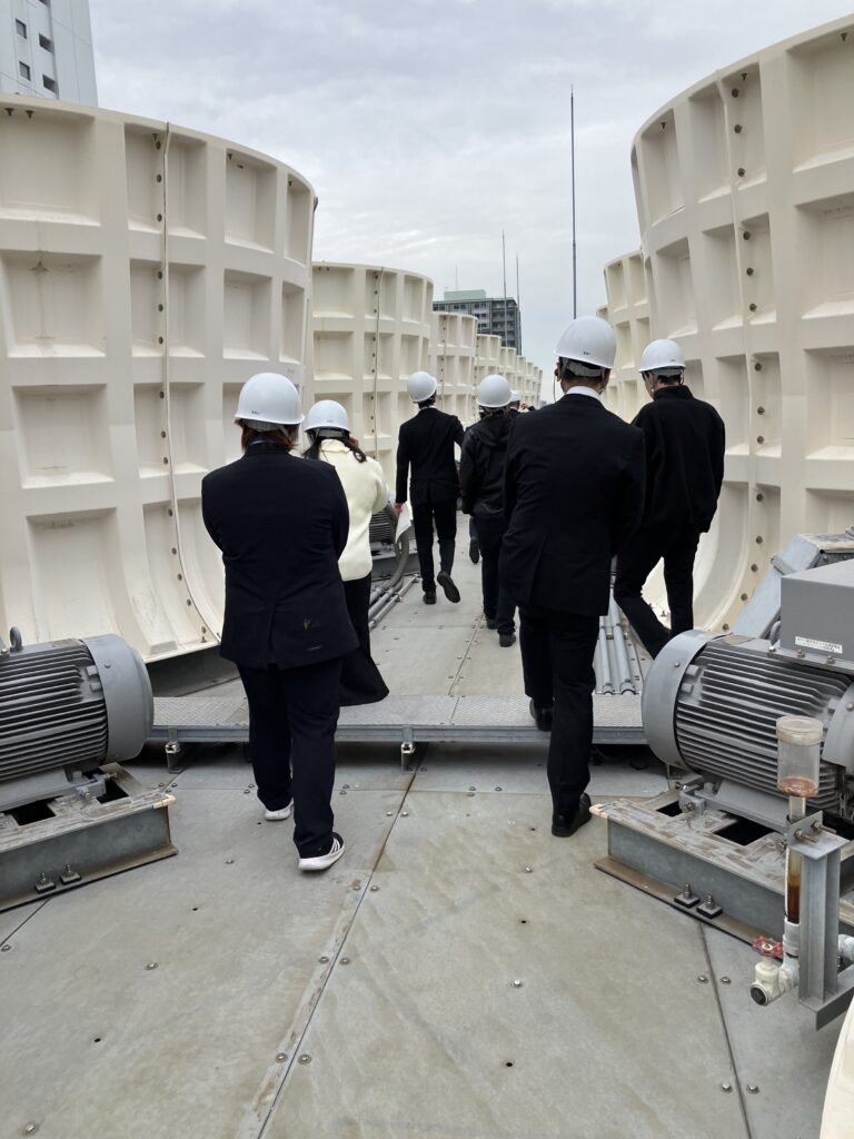 当社社員からは地域冷暖房の仕組みの紹介を行い、冷凍機・ボイラー・冷却塔などの設備をご案内しました。